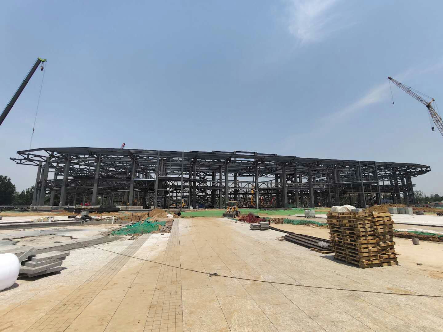 建筑面積37900平方米,鋼結(jié)構(gòu)、箱型柱10000噸、圓管桁架2000噸,該項目2200噸桁架屋面結(jié)構(gòu)完成一次性整體提升。