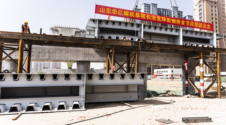該工程榮獲山東省鋼結(jié)構(gòu)金獎。工程內(nèi)容:鋼箱橋梁制作、安裝,主橋采用鋼箱梁,鋼橋梁跨徑為40米+65米+40米=145米,總用鋼量2200噸。