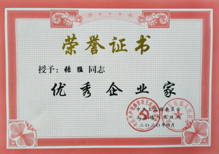 張猛董事長被授予“優(yōu)秀企業(yè)家”稱號