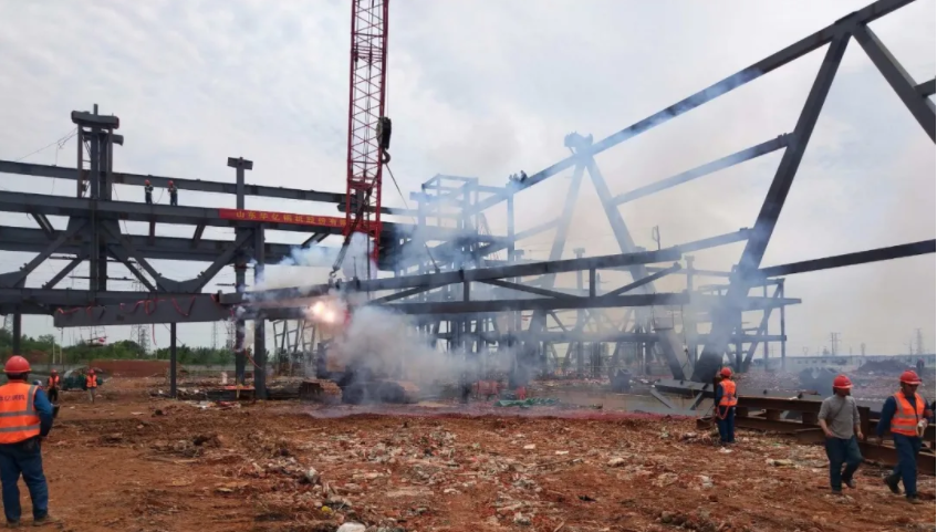 4月20日,伴隨著響亮喜慶的鞭炮聲,公司承建項(xiàng)目安慶會(huì)展中心第一榀屋面梁緩緩起吊,標(biāo)志著安裝工程正式開始。