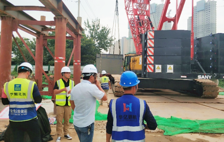 吊裝前項(xiàng)目部組織施工人員進(jìn)行詳盡的安全、技術(shù)交底,施工班組各盡其職,默契配合,順利完成首次吊裝的施工任務(wù)。
