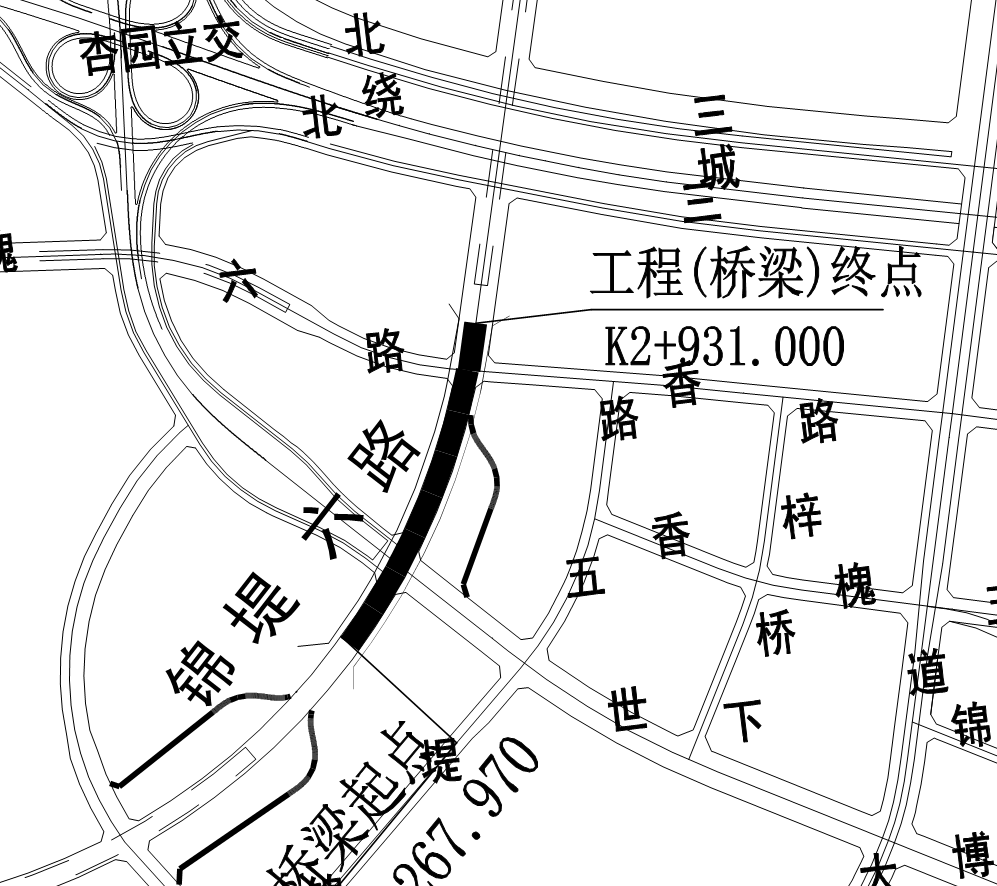 我方承建的二標(biāo)段西起灞河?xùn)|路以東,東至香槐六路,主線總長1331m,起訖樁號為K1+600~K2+931,其中隧道道段總長223m,U型槽217m,橋梁段總長為672m。