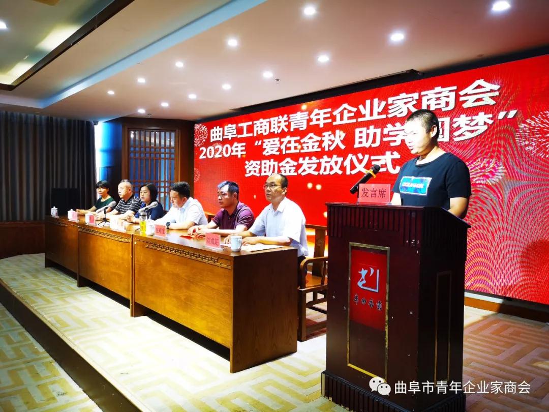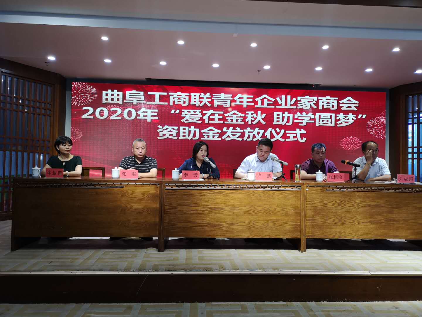 聚愛于心、助困于行。9月4日上午,曲阜市工商聯(lián)青年企業(yè)家商會2020年“愛在金秋 助學(xué)圓夢”資助金發(fā)放儀式在書香曲阜二樓會議室舉行。市委常委、統(tǒng)戰(zhàn)部部長李芳,市委統(tǒng)戰(zhàn)部副部長、工商聯(lián)黨組書記許鵬,市工商聯(lián)機關(guān)人員,相關(guān)鎮(zhèn)街有關(guān)人員,青商會的愛心企業(yè)家和13名受捐助的學(xué)生參加了此次愛心捐助活動,我司張猛董事長出席會議,并參與捐贈。
