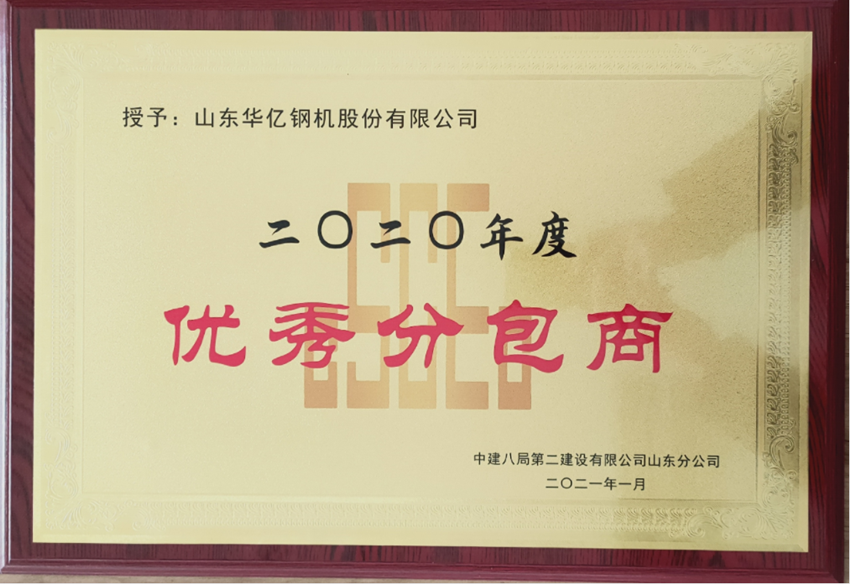“誠信務(wù)實,合作共贏”一直是每個華億人心中不變的理念。近日,我公司在泰安體育場項目中,被中建八局第二建設(shè)有限公司山東分公司授予“2020年度優(yōu)秀分包商”,高度彰顯了我公司的技術(shù)實力以及優(yōu)質(zhì)的服務(wù)能力,這也正是我公司堅定不移踐行這一經(jīng)營理念的結(jié)果。經(jīng)過公司上下和合作方的共同努力,公司各項指標(biāo)再創(chuàng)歷史新高,繼續(xù)保持了持續(xù)穩(wěn)定健康發(fā)展的良好態(tài)勢。