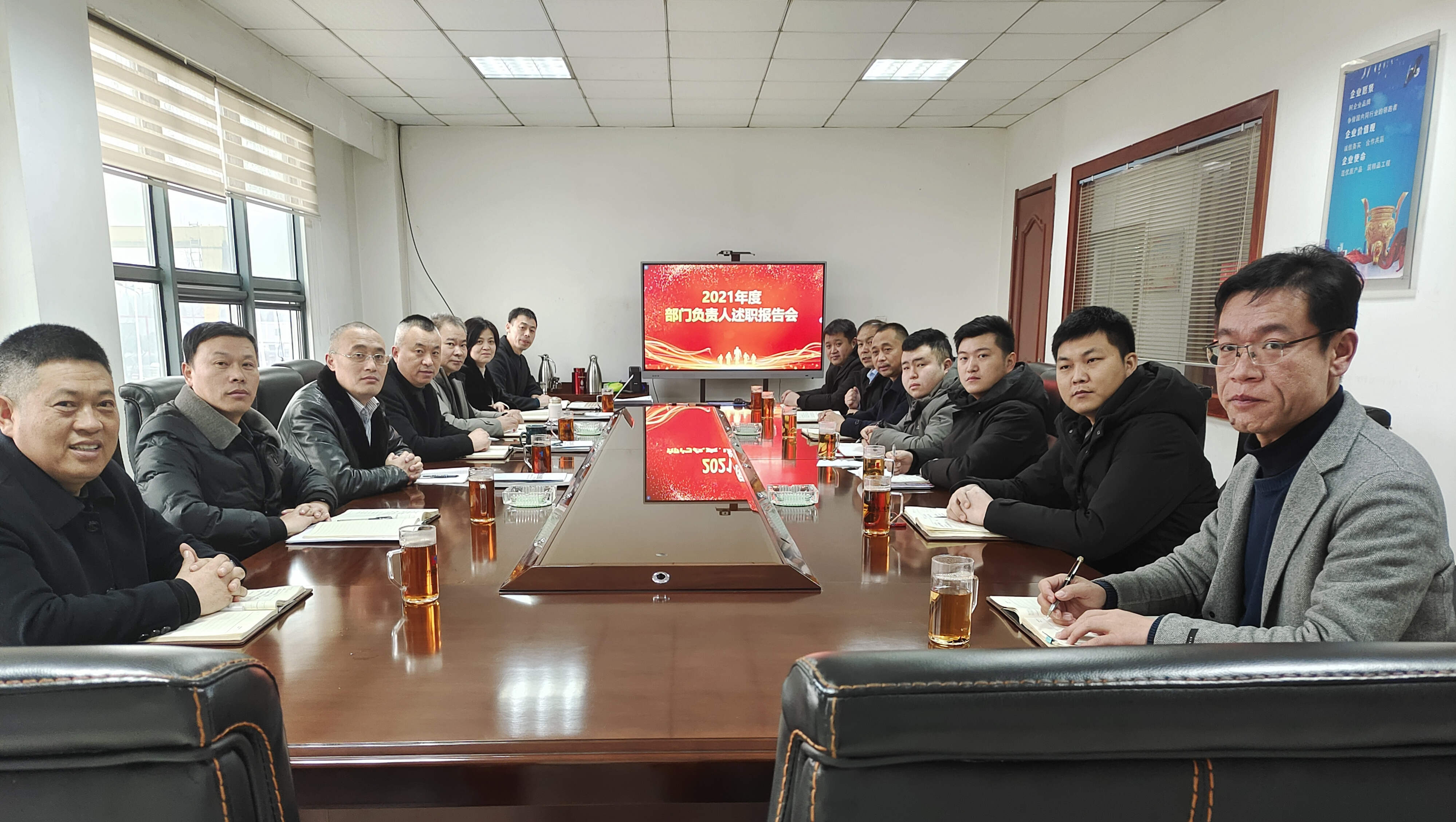 1月15日,公司召開2021年度部門負責(zé)人述職報告會,公司董事長張猛、總經(jīng)理孫鵬等領(lǐng)導(dǎo)班子成員,各部門負責(zé)人等參加會議。