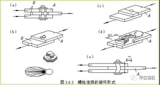 e)螺桿因太長或螺孔大于螺桿直徑而產(chǎn)生彎、剪破壞(板疊厚度≤5d);
