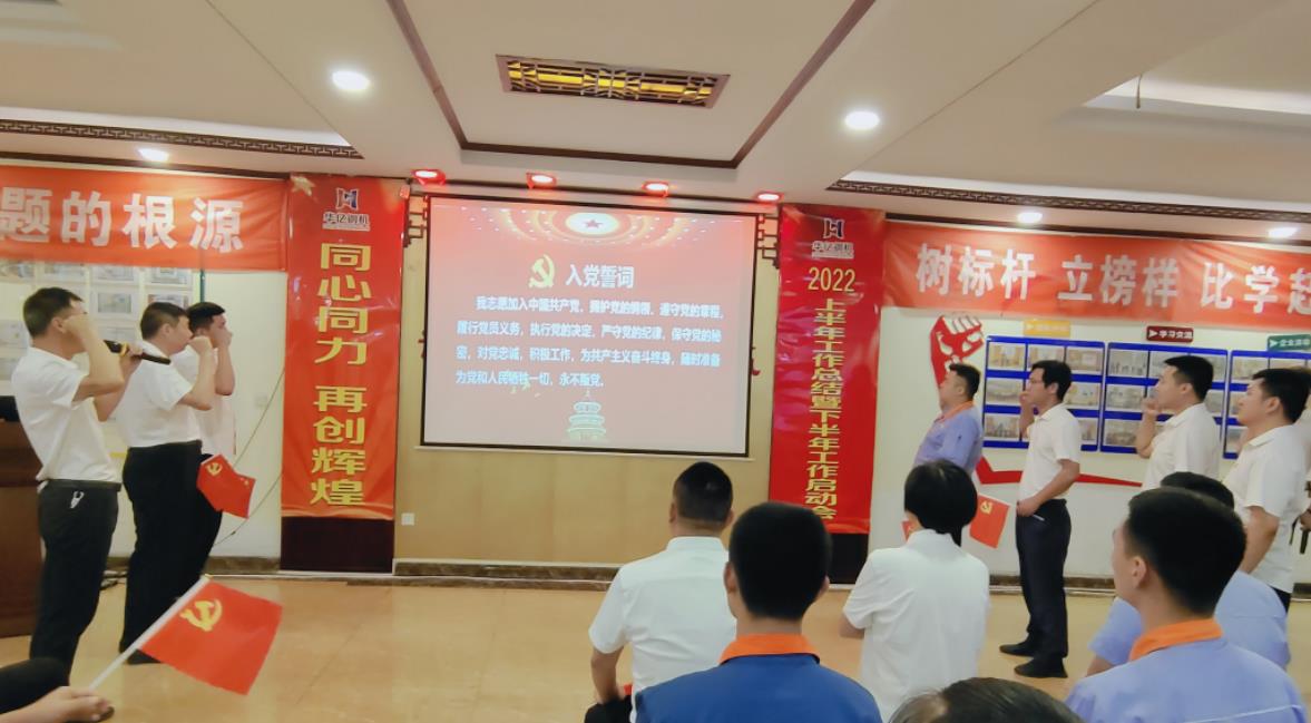 在公司黨支部書記、副總經(jīng)理楊鴻領(lǐng)誓下,全體黨員佩戴黨徽,舉起右拳,面向黨旗重溫入黨誓言,進一步激勵和督促黨員,在任何情況下不忘身份,牢記信念,永葆共產(chǎn)黨員本質(zhì),充分發(fā)揮模范帶頭作用,鼓舞自己在工作中繼續(xù)奮發(fā)有為,不斷前進。宣誓后公司所有黨員為慶祝中國共產(chǎn)黨建黨101周年獻歌,一曲《我和我的祖國》讓人回想起了革命老前輩們的奮斗歲月,鼓勵我們不忘初心,繼續(xù)前行。