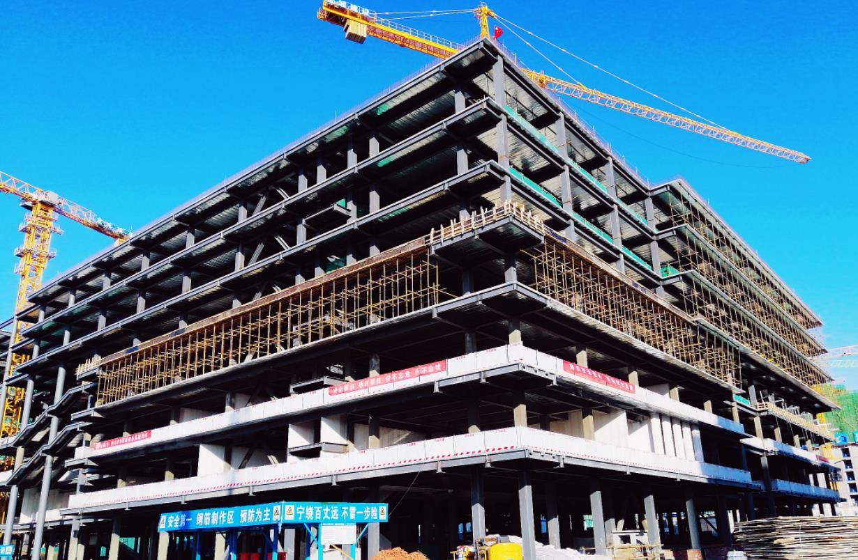 淄博職業(yè)教育產(chǎn)教實(shí)訓(xùn)基地項(xiàng)目是淄博市第一個(gè)全部采用裝配式建筑的大型公建類項(xiàng)目,本標(biāo)段建筑面積為104413㎡,結(jié)構(gòu)形式為鋼框架-中心支撐結(jié)構(gòu),基礎(chǔ)類型為筏板基礎(chǔ),地基形式為天然地基。綜合樓地下二層地上七層,建筑面積84662㎡。體育館、食堂、活動(dòng)中心地下一層地上三層,建筑面積19751㎡,采用裝配式鋼結(jié)構(gòu)建筑,裝配率76%,達(dá)到裝配式建筑二星級(jí)標(biāo)準(zhǔn)。