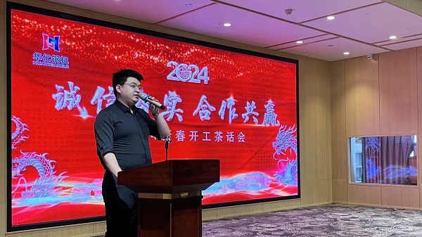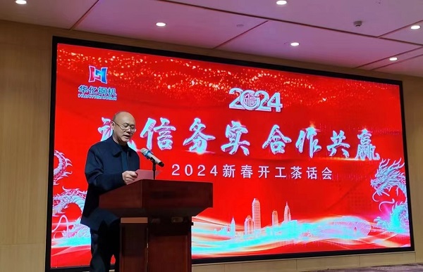公司分管商務(wù)的副總經(jīng)理、華億重工總經(jīng)理張權(quán)在開工儀式暨新春茶話會(huì)上發(fā)表致辭,他強(qiáng)調(diào),順風(fēng)航行啟新程,自強(qiáng)不息寫新歌。新的一年,公司上下要以更為緊迫、更有責(zé)任、更加扎實(shí)、更加精細(xì)的作風(fēng),沖刺2024年的年度目標(biāo)。號(hào)召全體員工要全身心投入2024年的新征程之中,保持昂揚(yáng)斗志,精準(zhǔn)發(fā)力,辛勤耕耘,以頑強(qiáng)拼搏的姿態(tài)和務(wù)實(shí)的作風(fēng),為完成新一年的業(yè)績(jī)目標(biāo)而不斷拼搏。
