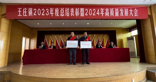 2月22日上午,王莊鎮(zhèn)召開2023年度總結(jié)表彰暨2024年高質(zhì)量發(fā)展動(dòng)員大會(huì),全面總結(jié)2023年工作成效,部署2024年重點(diǎn)工作。大會(huì)對(duì)在2023年度工作中作出突出成績(jī)的先進(jìn)單位和個(gè)人予以表彰,公司分別榮獲“龍頭企業(yè)”、“助力王莊爭(zhēng)先進(jìn)位企業(yè)”、“最具社會(huì)責(zé)任感企業(yè)”、“群團(tuán)工作先進(jìn)單位”;董事長(zhǎng)張猛榮獲“優(yōu)秀企業(yè)家”稱號(hào),并作為企業(yè)家代表發(fā)言。