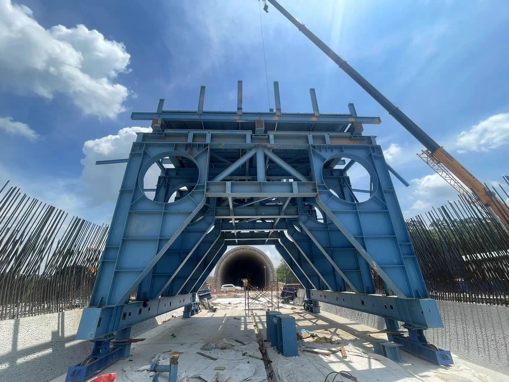 近日,公司首臺自主設(shè)計制造的全斷面鋼模板砼襯砌隧道臺車在廣湛鐵路站前十二標項目經(jīng)理部機場隧道項目現(xiàn)場順利完成安裝調(diào)試并已正式投入使用,標志著公司在隧道施工建造裝備領(lǐng)域取得了重大突破。
