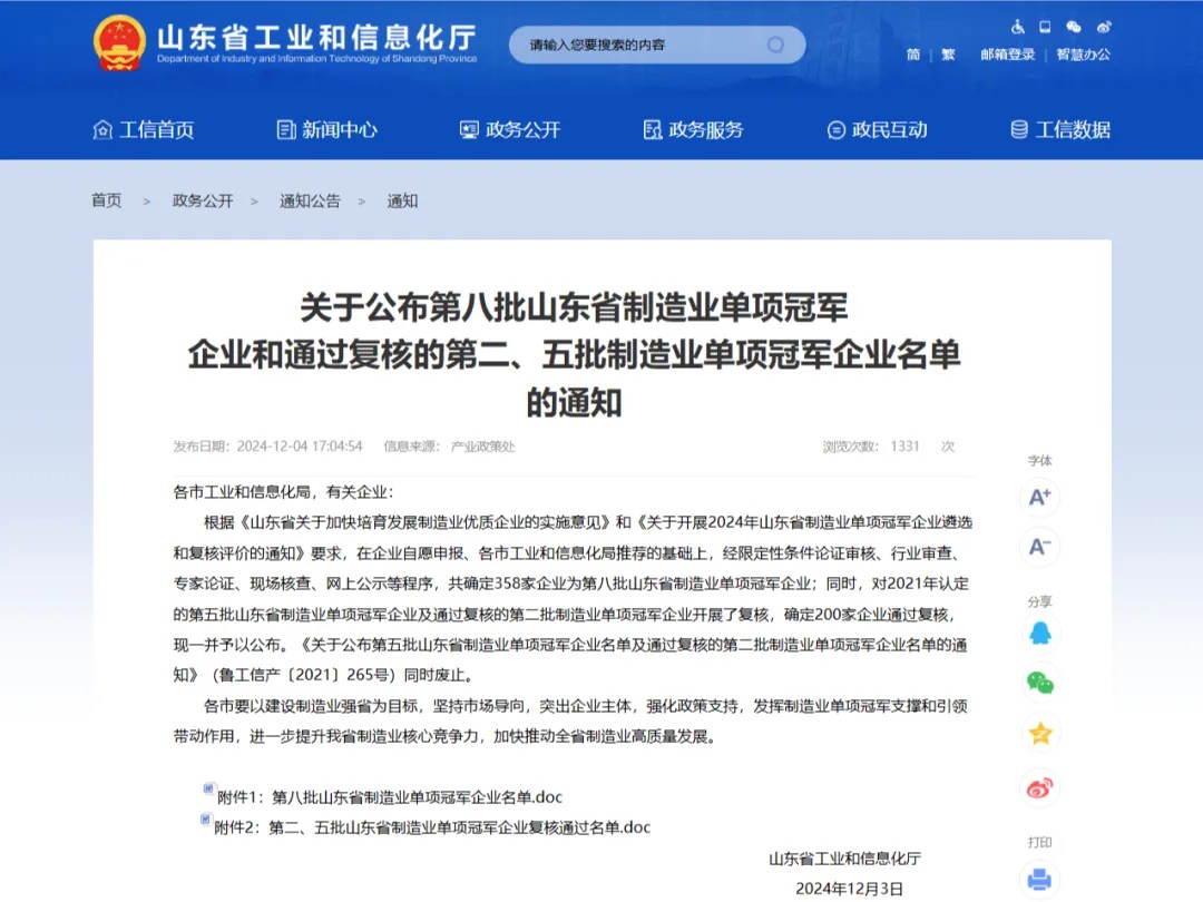 據(jù)了解,山東省制造業(yè)單項(xiàng)冠軍,是指企業(yè)長期專注于制造業(yè)特定細(xì)分領(lǐng)域,生產(chǎn)技術(shù)或工藝水平全省領(lǐng)先,單項(xiàng)產(chǎn)品(生產(chǎn)性服務(wù))市場(chǎng)占有率位居全省乃至全國前列的企業(yè),其代表著制造業(yè)發(fā)展的領(lǐng)頭雁和排頭兵,是細(xì)分領(lǐng)域的行業(yè)制高點(diǎn)。