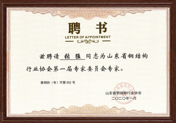山東省鋼結(jié)構(gòu)行業(yè)協(xié)會(huì)聘書(shū)