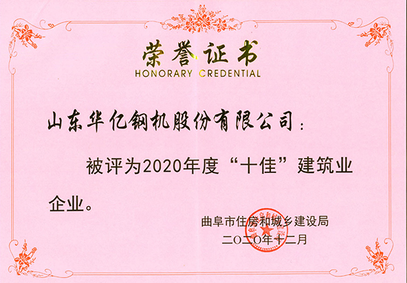 2020年年度"十佳"建筑業(yè)企業(yè)