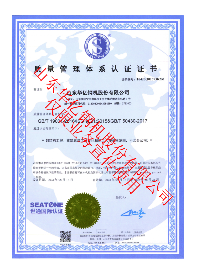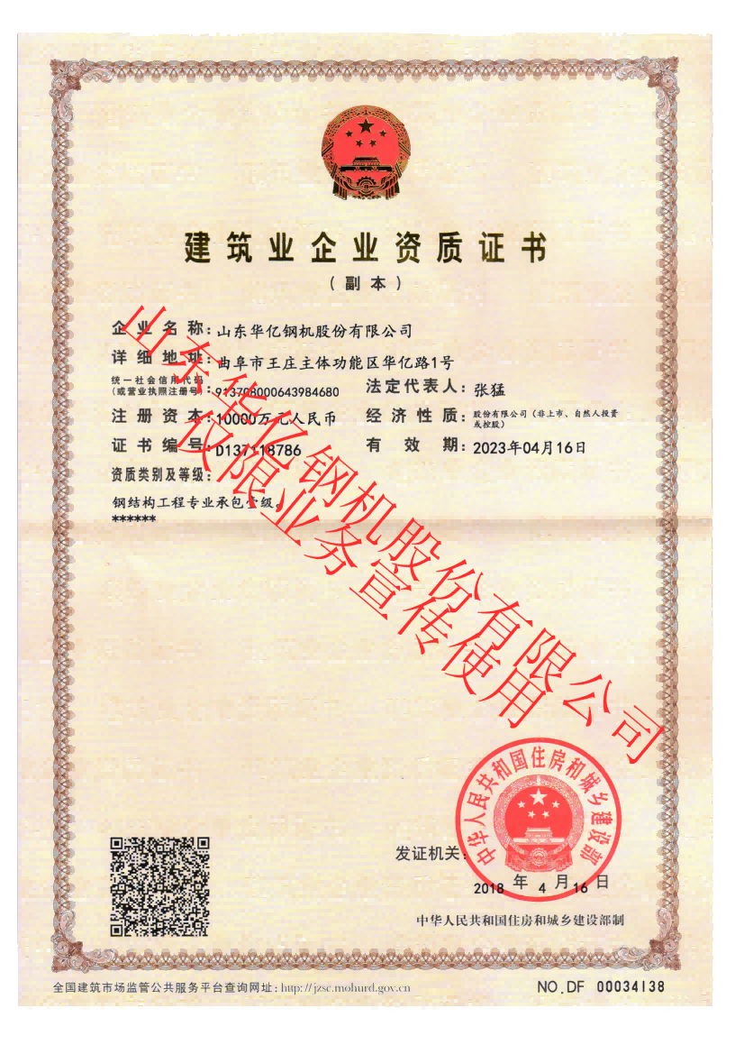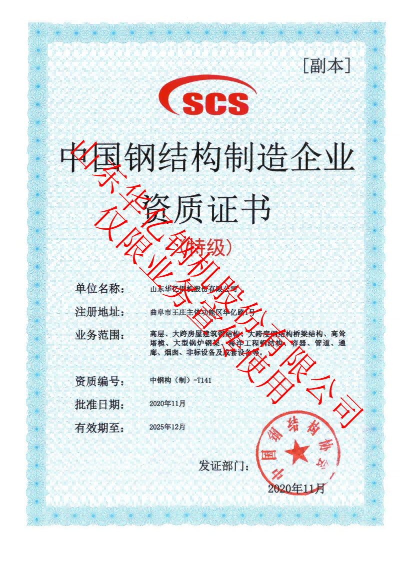 中國(guó)鋼結(jié)構(gòu)制造企業(yè)資質(zhì)證書(shū)