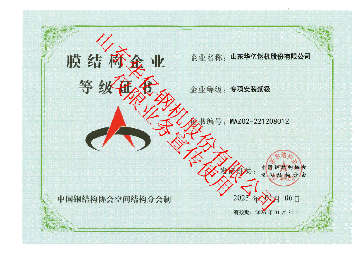 膜結(jié)構(gòu)企業(yè)專(zhuān)項(xiàng)安裝貳級(jí)